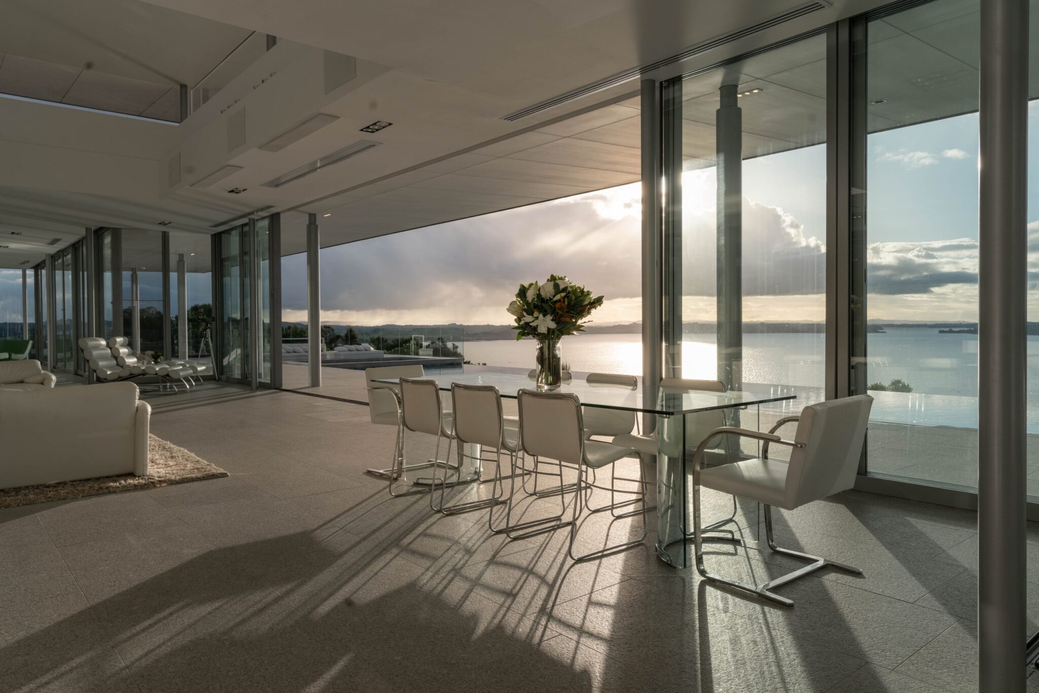 - Situated on a ridge overlooking the Pacific Ocean, the lodge offers panoramic views of rolling hills, native bush, and unspoiled beaches, creating an idyllic retreat.