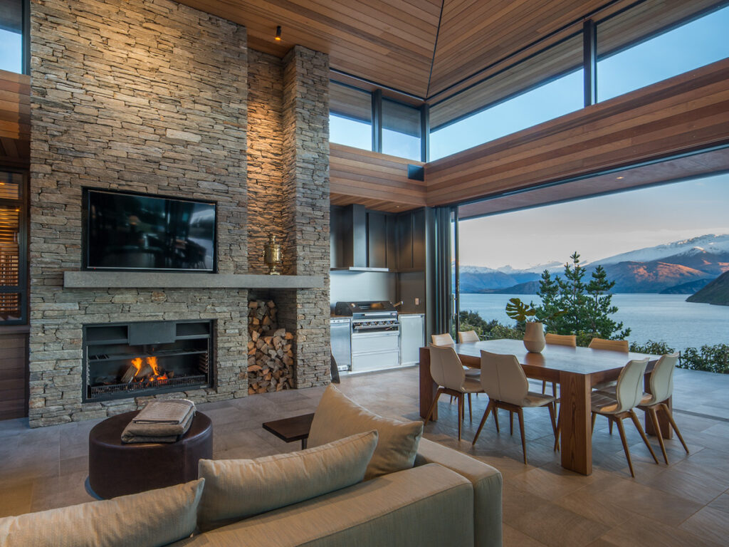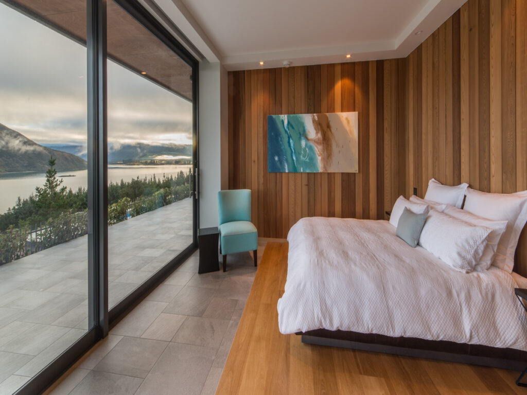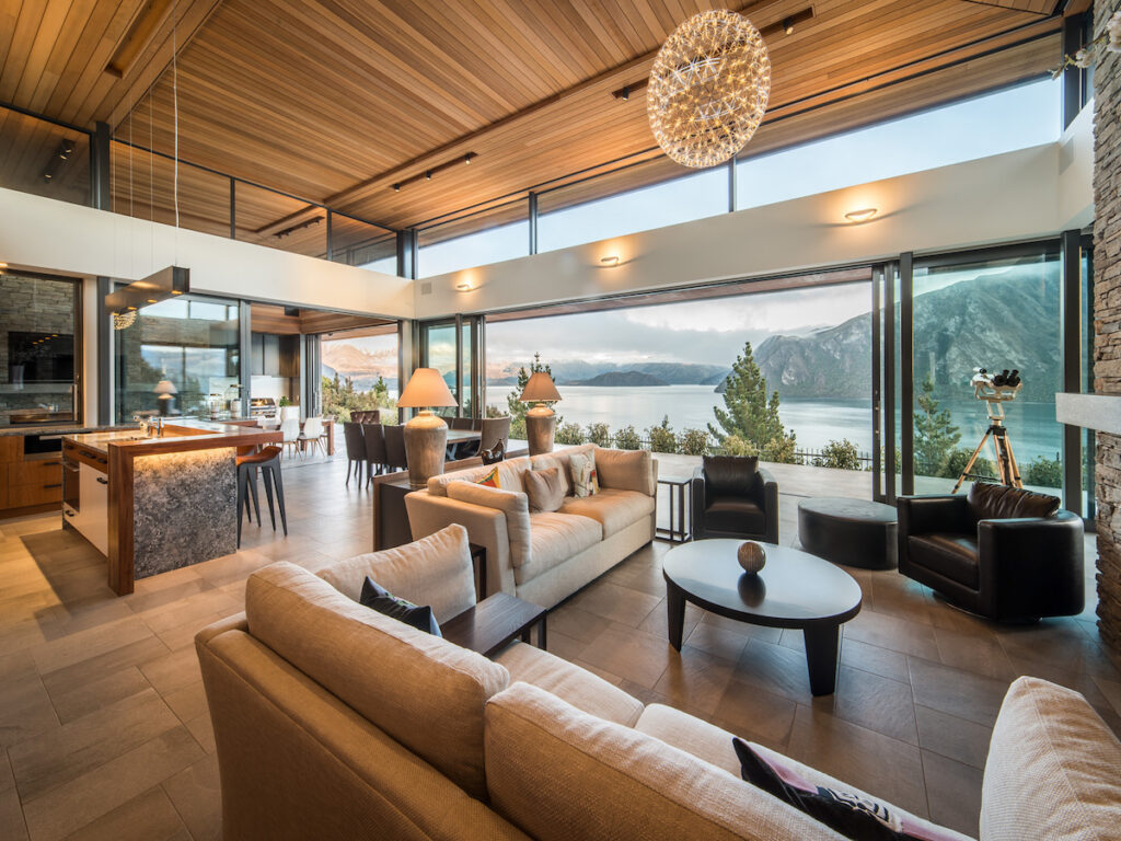 The villa is truly outstanding – It is spacious, beautifully decorated and furnished, and offers seamless indoor and outdoor flow. Large open fires, floor to ceiling glass with a wall of bi-fold doors which open to the outside deck with 180 degree views of Lake Wanaka and the mountains beyond.