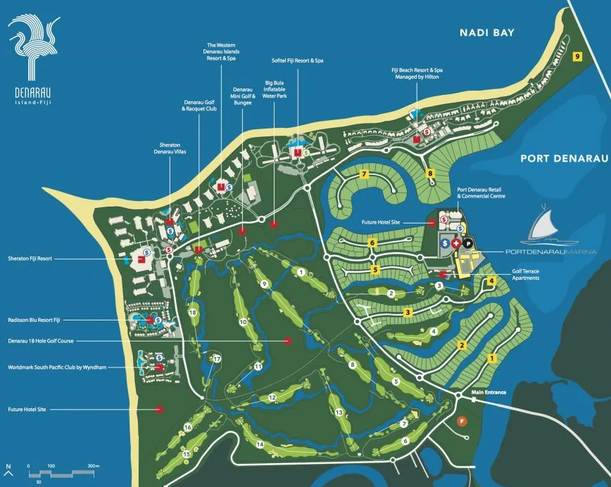 The Denarau golf course has a par of 72. The club features an 18-hole championship golf course designed by Eiichi Motohashi. The course is beautifully landscaped and features challenging holes with bunkers, water hazards, and undulating greens. The course offers tee positions for all levels of golfers. It includes four water carry par-threes, four challenging par-fives, and 10 par-fours. The longest hole is 516 metres, and the shortest is 158 metres. (Off the Black Tees)